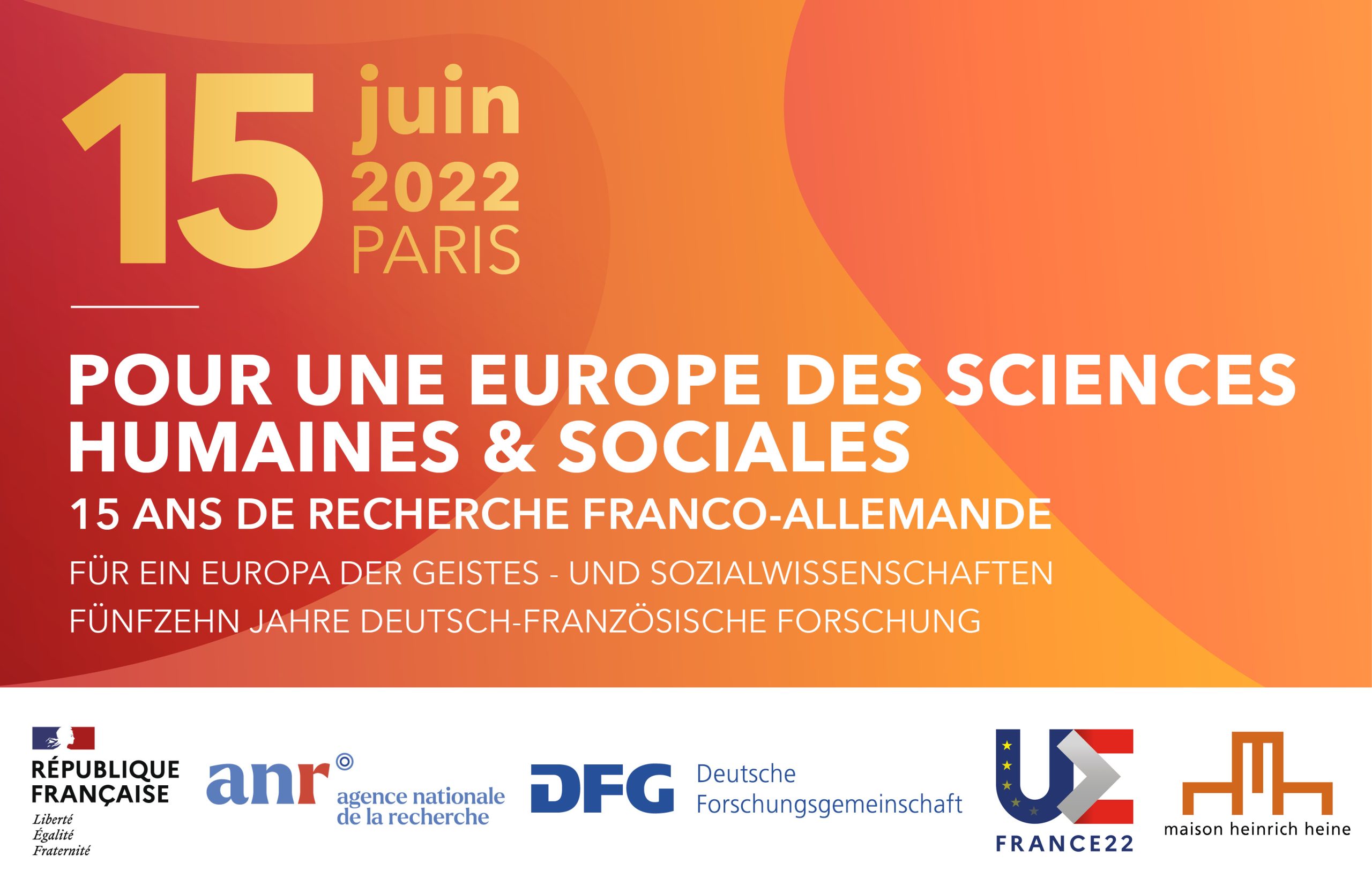 Ce panel aura lieu dans le cadre de la journée anniversaire « Pour une Europe des Sciences humaines et sociales. 15 ans de recherche franco-allemande », en coopération avec l’Agence nationale de la Recherche (ANR) et la Deutsche Forschungsgemeinschaft (DFG). Différents panels auront lieu pendant toute la