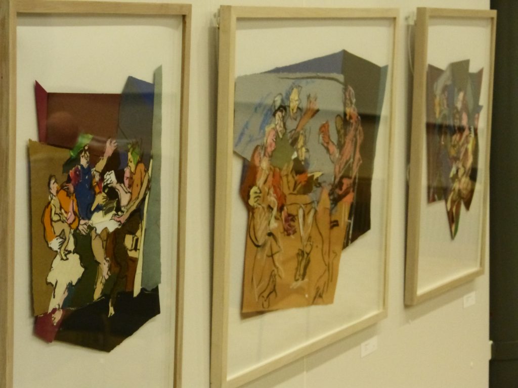 Tirant son inspiration de la peinture traditionnelle des grands maîtres, tels que Caravaggio et Bonnard, R. G. Mordmüller s’attache à capturer et exprimer la dynamique des mouvements en exploitant des formes en mouvement et des couleurs soutenues. Dans cette exposition, l’artiste brise les formats standards de l’œuvre d’art classique avec sa série de collages mélangeant assemblages de différents types de papiers et peinture à l’huile.