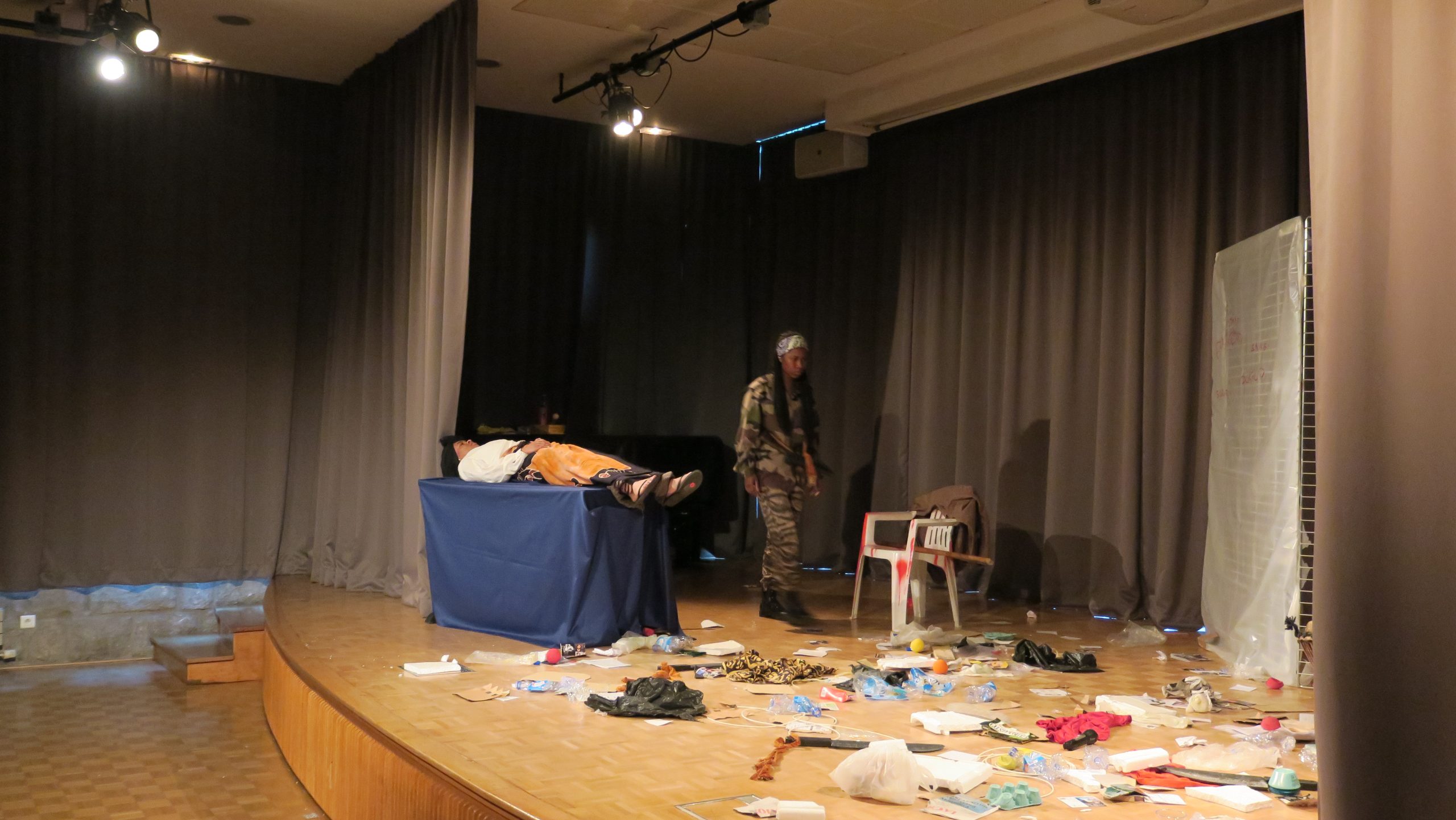 Une lecture en musique d’après les discours politiques, témoignages et extraits du roman de Céline L. qui révèle comment l’on peut passer de l’état de victime à celui de bourreau, dans un contexte de guerre civile. Une guerre en République Démocratique du Congo/Nord-Kivu qui sévit depuis vingt ans dans l’indifférence internationale. Ce projet est un hommage à ces femmes qui dansent sous les bombes, qui marchent pour aller vendre leurs récoltes, pour travailler dans les champs.