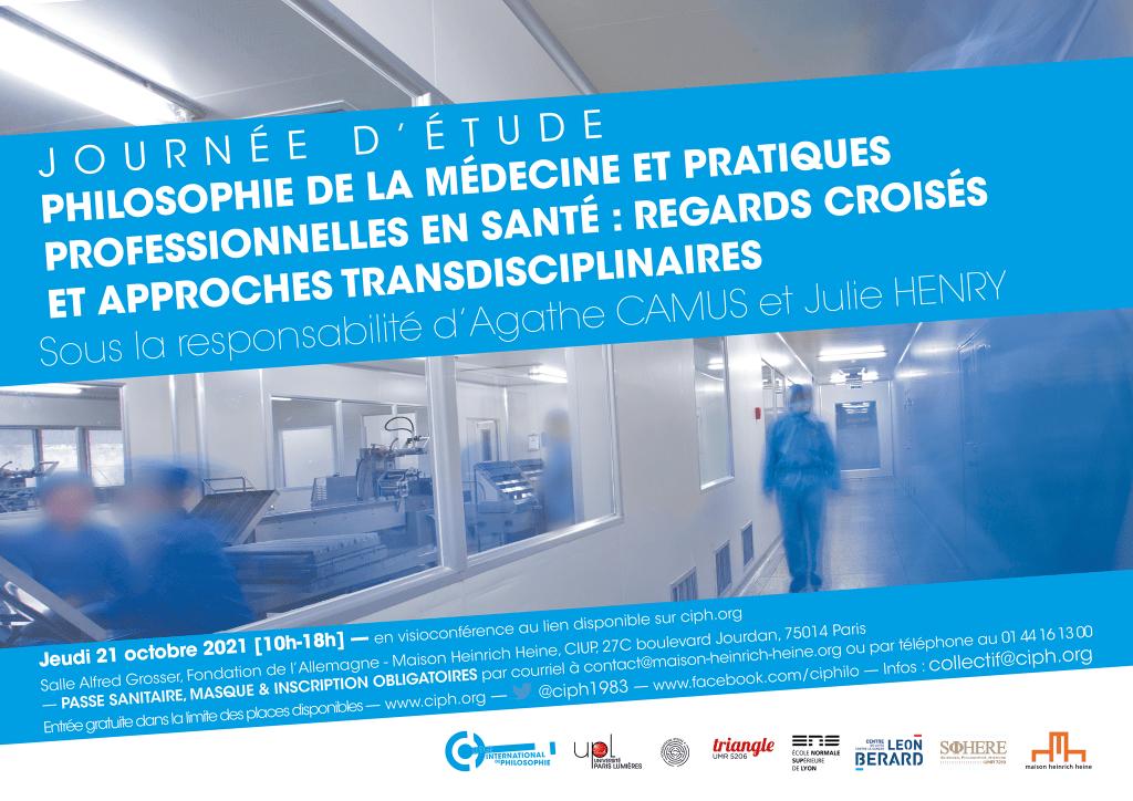 organisé par le Collège international de philosophie (CIPh), en coll. avec le Laboratoire de recherche Triangle, l’ENS de Lyon, le Centre de lutte contre le cancer Léon Bérard, sous la responsabilité d’Agathe Camus et Julie Henry, en coopération avec la Maison Heinrich Heine.