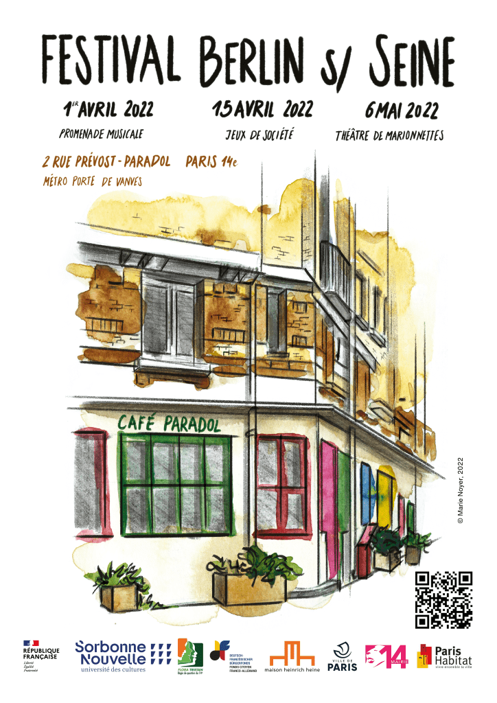 Le Festival Berlin s/ Seine s’adresse à tous les habitants du 14e arrondissement et au-delà. Fruit d’une collaboration entre la Régie de quartier Paris 14 et de jeunes médiatrices culturelles en formation à la Sorbonne Nouvelle (Master MCFA), il s’appuie sur la culture populaire allemande pour refaire territoire en période de pandémie.