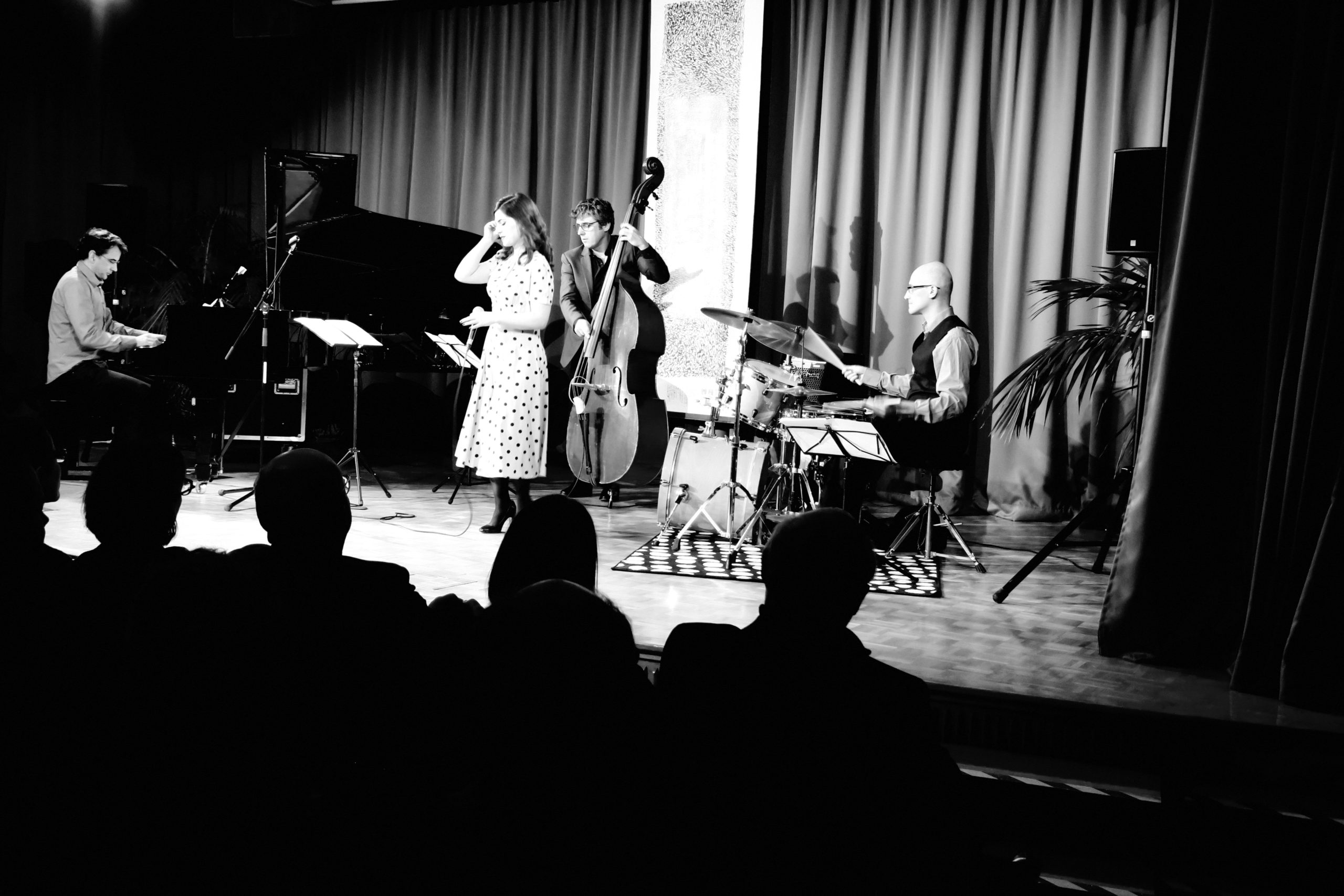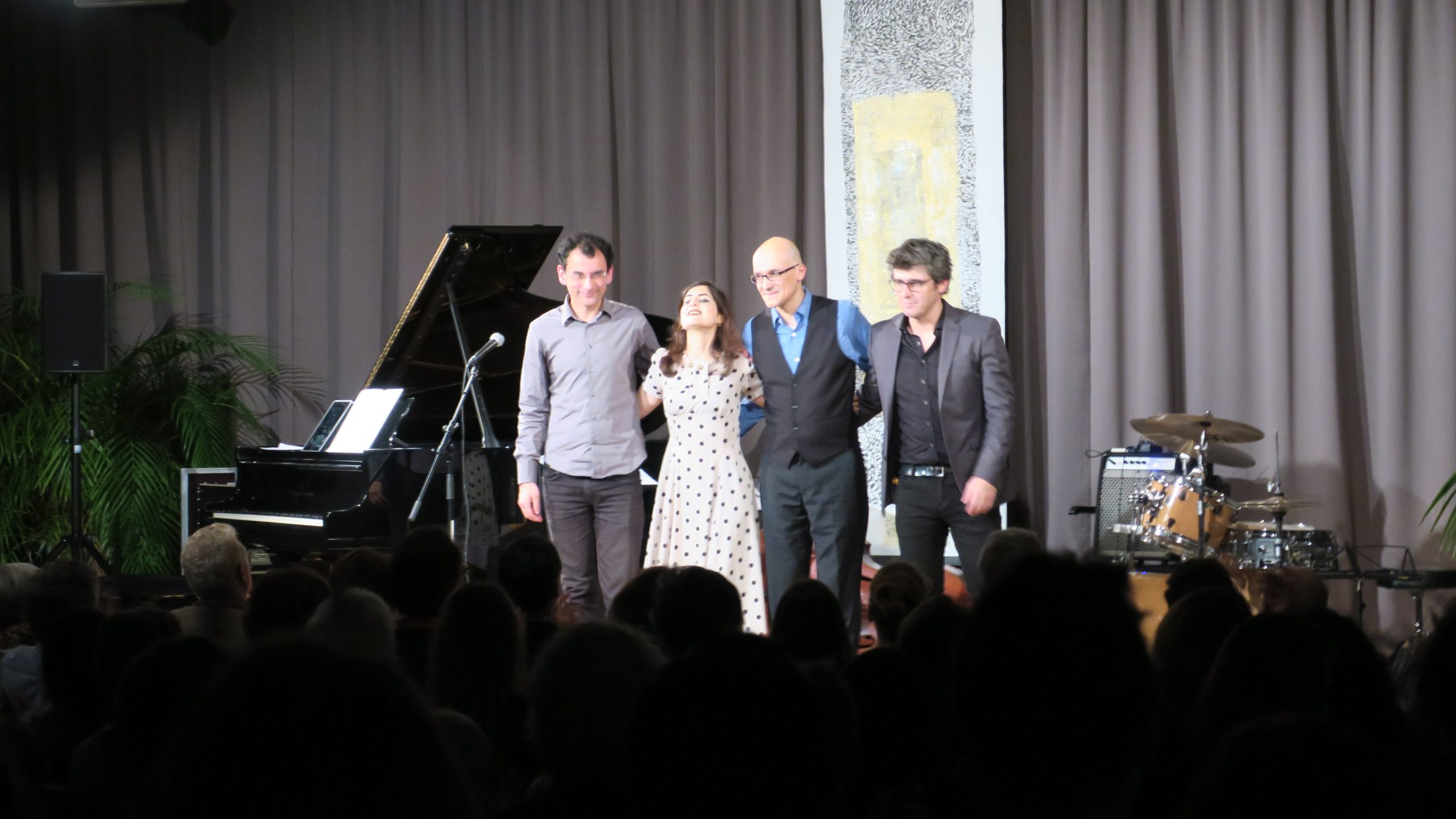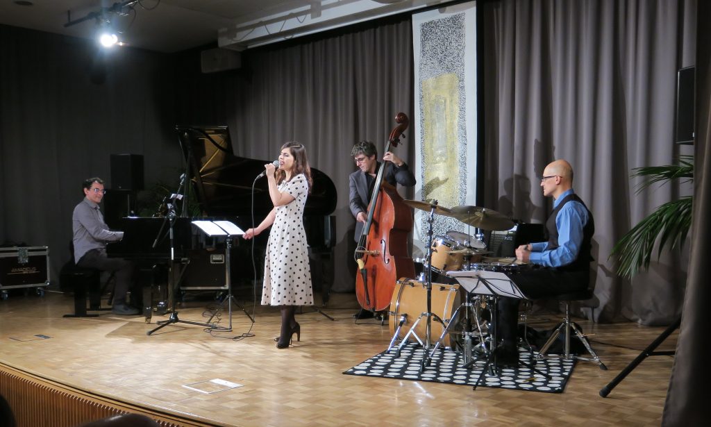 Le Satin Jazz Quartet c’est une chanteuse à la voix de velours, un pianiste au toucher délicat, un contrebassiste vibrant et un batteur endiablé. Un mélange parfait de quatre musiciens d’exception dont les univers musicaux se complètent dans un jazz à la fois doux et pétillant. Leur répertoire est composé de standards emblématiques de jazz interprétés avec sensibilité et originalité donnant envie de voyager loin…